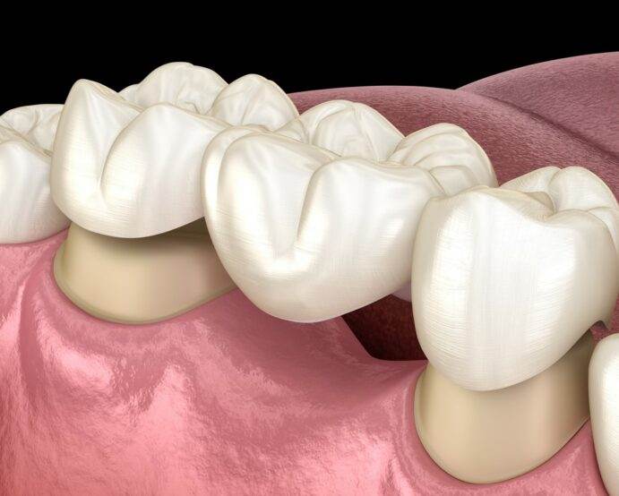 La PROTESI FISSA sfrutta dei denti presenti in bocca ai quali viene cementata per ripristinare uno o più denti mancanti tramite i cosiddetti PONTI.
